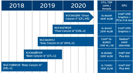 Selon Wccftech, qui a signalé l’existence de cette nouvelle gamme de dispositifs NUC, il y aura deux nouvelles gammes NUC, une gamme NUC Coffee Lake-H Refresh « Ghost Canyon X » et une gamme NUC Comet Lake-U « Frost Canyon ».