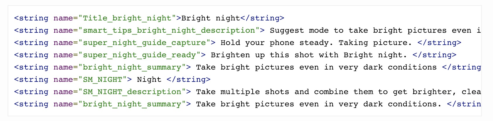 Selon XDA Developpers, qui a décompilé l’APK de l’application Samsung Camera sur le Galaxy Note 9, la fonction s’appelle « Bright Night » et fonctionnera de manière analogue au mode nuit de Google.