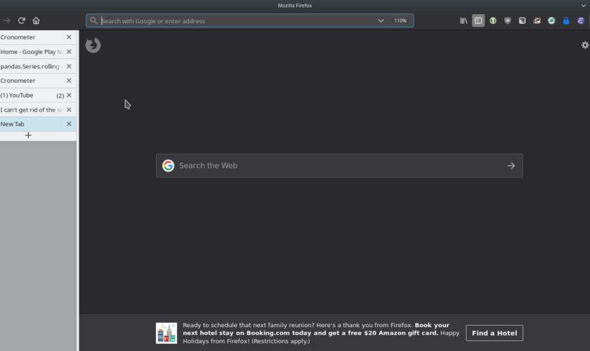 « Prêt à planifier la prochaine réunion de famille ? Voici un merci de Firefox. Réservez votre prochain séjour à l’hôtel sur Booking.com dès aujourd’hui et recevez un chèque-cadeau Amazon gratuit de 20 dollars. Joyeuses fêtes de la part de Firefox ! », peut-on traduire de la notification affichée.