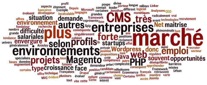 La liste des CMS est de plus en plus longue et les entreprises réclament donc des profils de plus en plus spécialisés. Ce qui, là aussi, a eu un effet porteur sur les offres salariales - Les environnements, langages, Framework et autres CMS évoluent vite et, certains ont le vent en poupe (Exemple sur Magento, ce CMS créé pour les environnements Ecommerce qui connait une croissance forte et, par conséquent, une demande phénoménale)