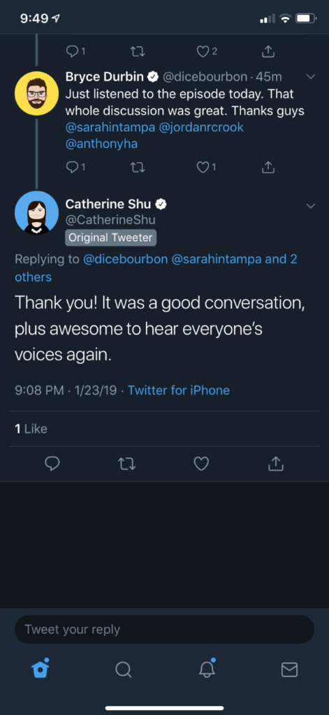 Plus récemment, au CES 2019, Twitter a annoncé la création d’un programme bêta permettant aux utilisateurs de tester les nouvelles fonctionnalités de l’interface, ainsi que toute une série de fonctionnalités destinées à rendre les conversations plus « saines ». Si vous utilisez le programme bêta, vous remarquerez de simples changements visuels dans votre flux Twitter, notamment différents types d’indentation, différentes couleurs pour indiquer si vous suivez une personne ou répondez à un tweet, et la possibilité de réduire les réponses pour se concentrer sur une personne en particulier (comme dans une chaîne d’e-mails).