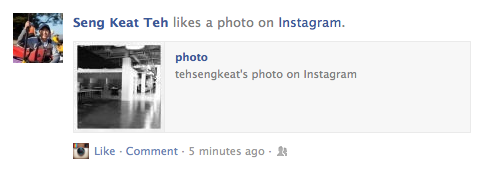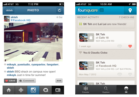 Les applications qui utilisent actuellement cette fonctionnalité, comme vous l’aurez compris, sont Instagram et la dernière version de Foursquare. Lorsque vous appuyez sur “J’aime” au sein de ces applications, l’action est envoyée directement à l’Open Graph de Facebook qui l’affiche directement sur votre Timeline et dans le flux de nouvelles de votre ami.