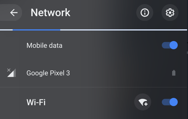Dès lors, vous devriez pouvoir vous y connecter à partir du panneau de paramètres rapides situé sur le côté droit de votre application. Chrome OS devrait également indiquer la force du signal et l’autonomie de votre smartphone, en remplaçant l’indicateur Wi-Fi par l’indicateur triangulaire de réseau.