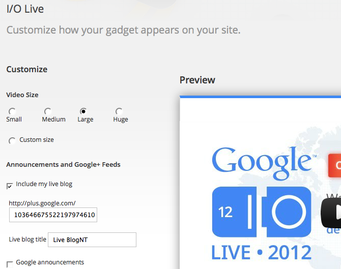 Pour ceux d’entre vous qui sont attirés, vous pouvez créer et personnaliser votre propre Google I/O “gadget live blogging” ici.