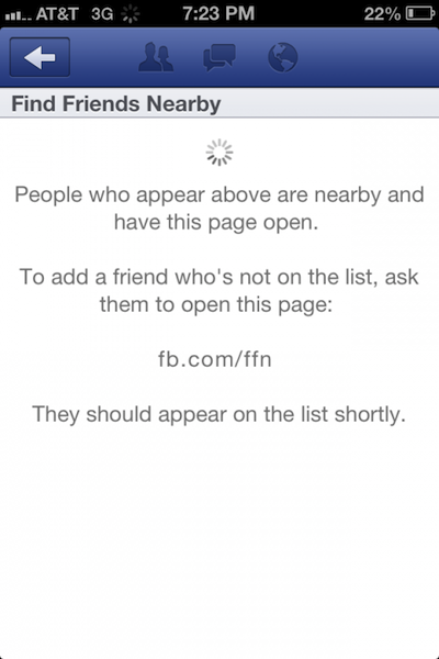 Comme vous avez pu le lire chez Fred par exemple, voici à quoi “Find Friends Nearby” ressemblait, dans toute sa splendeur, avant qu’elle soit retirée aujourd’hui :
