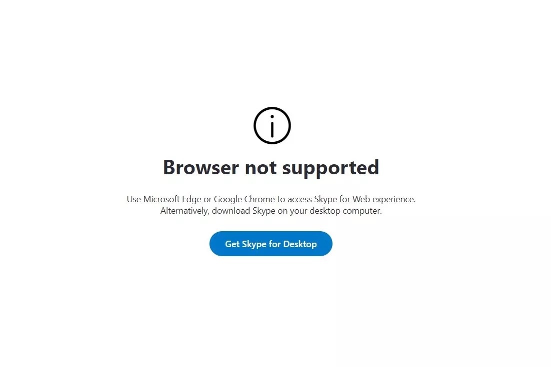 De plus, les seuls navigateurs compatibles avec le nouveau Skype pour le Web sont Google Chrome et Microsoft Edge. Vous ne pourrez donc pas utiliser Mozilla Firefox pour dialoguer dans le navigateur. Les autres navigateurs, tels que Safari ou Opera, ne sont actuellement également pas pris en charge.