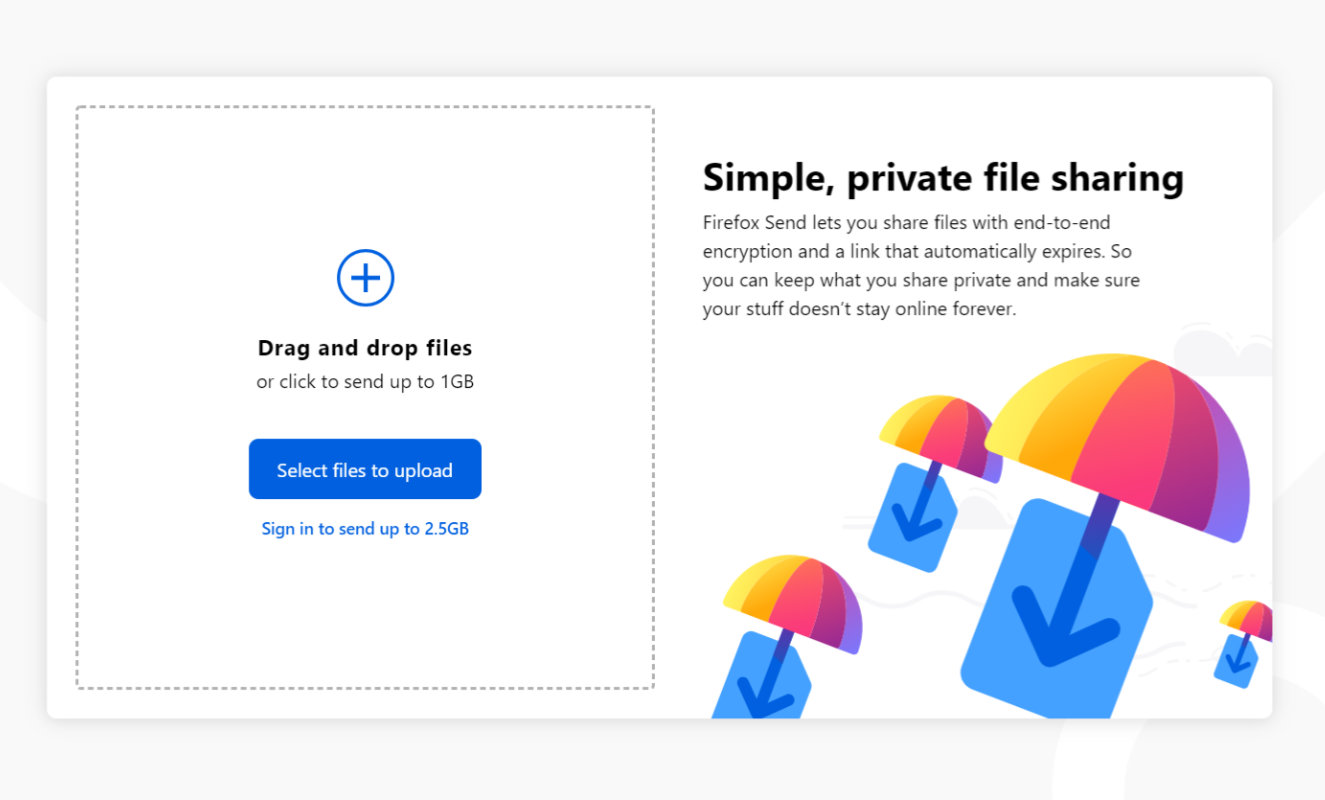 Firefox Send se distingue des autres services de partage de fichiers en utilisant un chiffrement de bout en bout pour protéger les données que vous partagez en toute sécurité, du moment où vous les partagez au moment de l’ouverture de votre fichier.