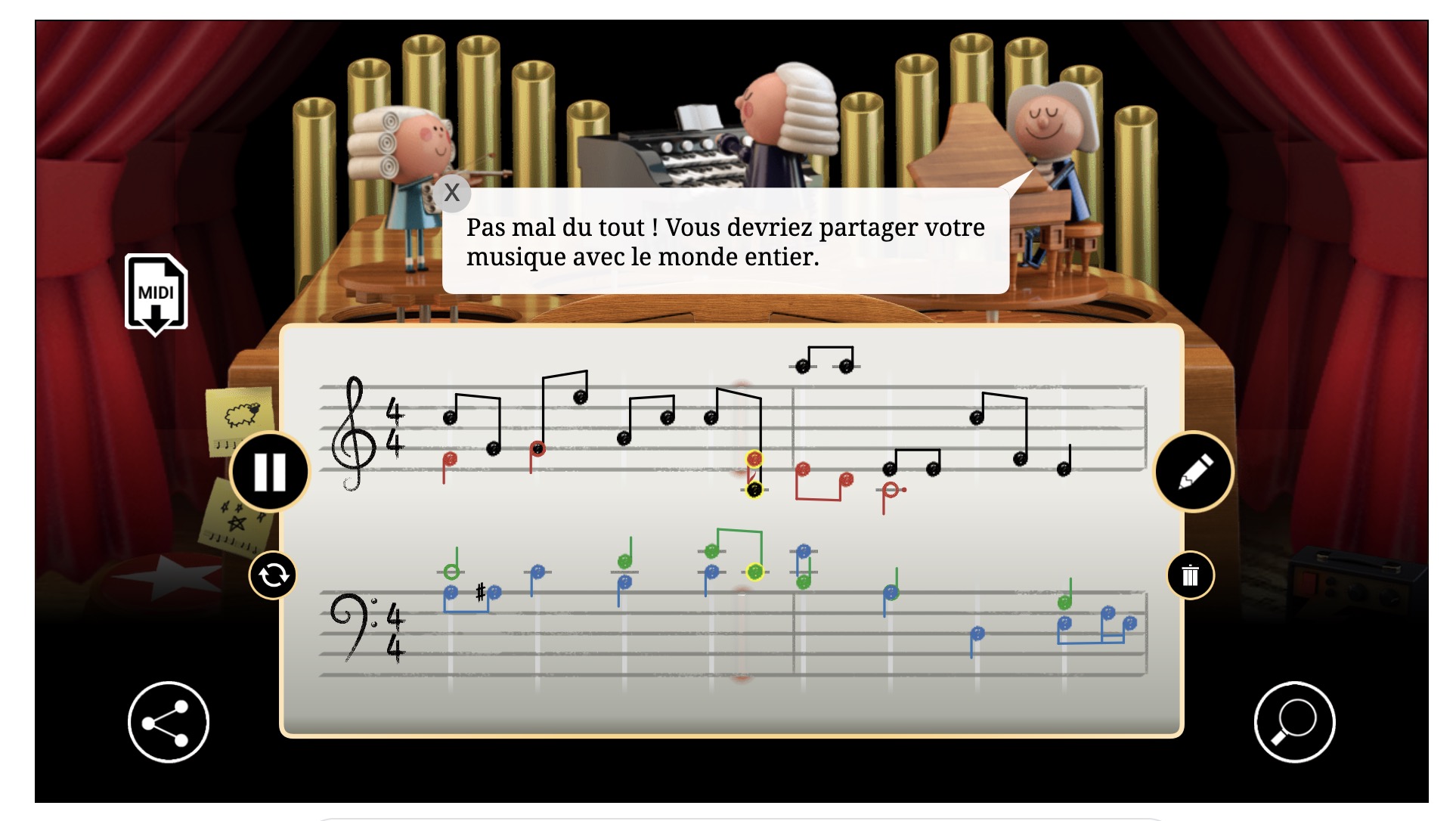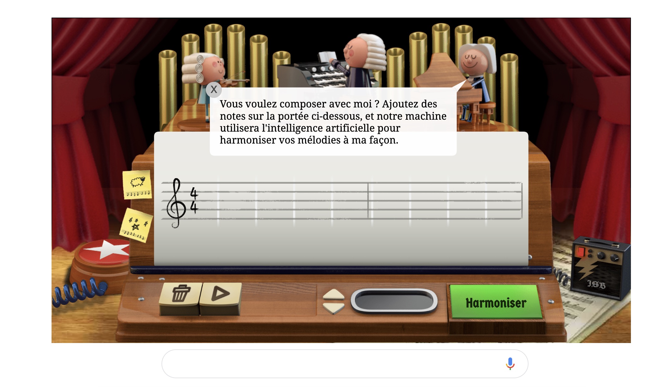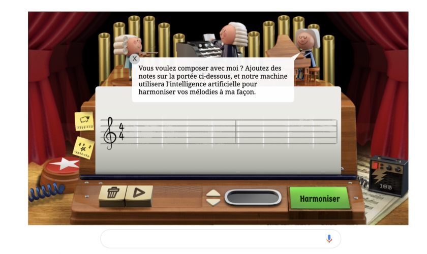Ce que le doodle de Google proposera est d’une simplicité presque magique. Vous ajoutez quelques notes sur la partition, qu’elles soient aléatoires ou inspirées par votre muse, cliquez le bouton « Harmoniser » et attendez que le doodle « harmonise » celles-ci et transforme votre partition en une séquence musicale à 4 voix qui porte la signature musicale du compositeur allemand. Bien sûr, rien n’arrive par magie.