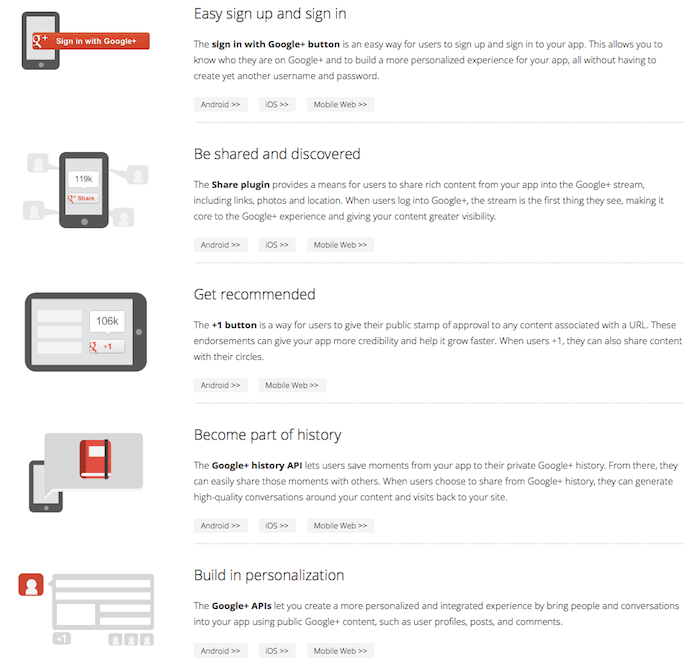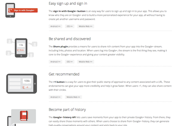 C’est en partant de ce constat que Google a décidé de se rapprocher des développeurs mobiles. Ainsi, la plateforme mobile va comprendre des plugins sociaux mobiles optimisés sur le Web, et SDK Google+ pour iOS et Android.