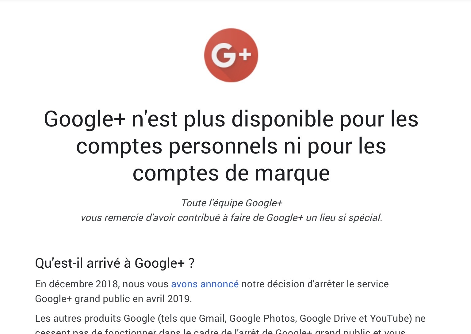 Google a officiellement lancé le processus de fermeture et de suppression de tous les comptes consommateurs sur sa plateforme sociale Google+, mettant ainsi fin à la tentative de la société de concurrencer directement Facebook et Twitter. « Google+ n’est plus disponible pour les comptes personnels ni pour les comptes de marque », peut-on lire sur le site du service.