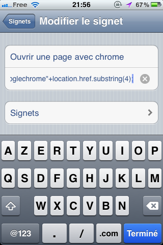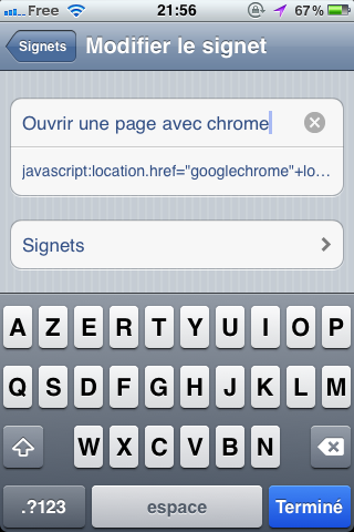 Heureusement, il semble y avoir une autre alternative. En effet, il se pourrait qu’un simple signet JavaScript dans Safari vous permette d’ouvrir n’importe quelle page sur Chrome. Bien que cela ne fait pas de Chrome votre navigateur par défaut, cela va tout de même vous permettre de plus facilement de sauter à partir de Safari dans Chrome lorsque vous ouvrez un lien à partir d’une application, un message SMS ou un e-mail.