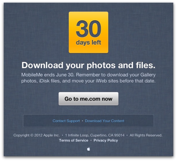 Donc, si vous êtes l’un des derniers guerriers qui soit encore sur MobileMe, c’est le moment de récupérer vos données sur le système avant qu’elles ne disparaissent pour de bon…