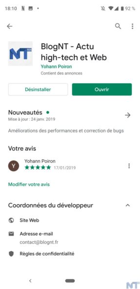 Les pages d’application elles-mêmes ont également été légèrement remaniées. Elles permettent de mieux mettre en évidence les évaluations et les captures d’écran de l’application. La barre de progression pour télécharger et installer une application a également été remplacée par un cercle autour de l’icône de l’application.