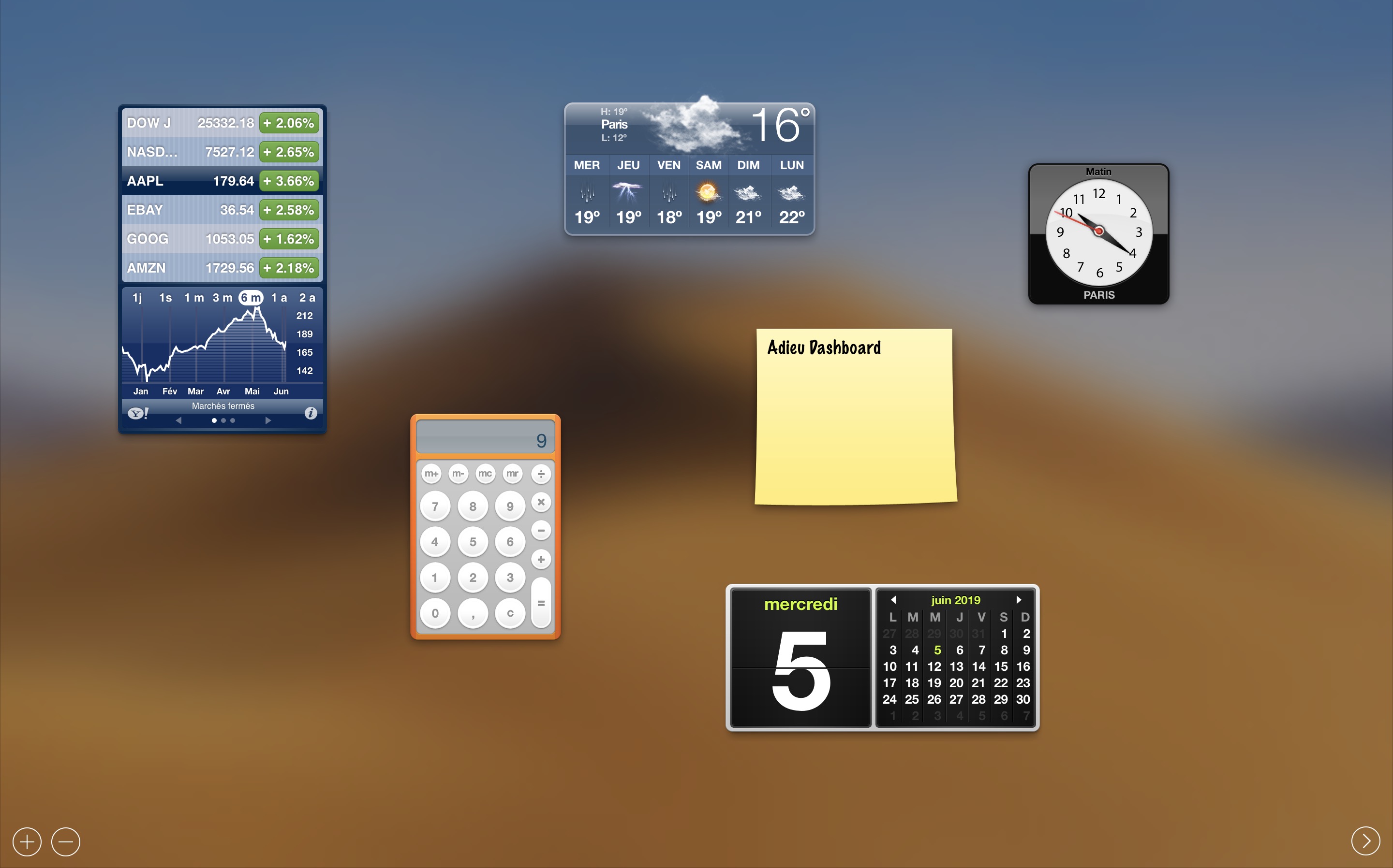 Dashboard d’Apple est progressivement supprimé de la prochaine mise à jour macOS 10.15 Catalina, comme noté par MacRumors. Dashboard a été lancé pour la première fois il y a 14 ans avec Mac OS X 10.4 Tiger en 2005, et a été mis à jour pour la dernière fois en 2011 avec le lancement de OS X 10.7 Lion.