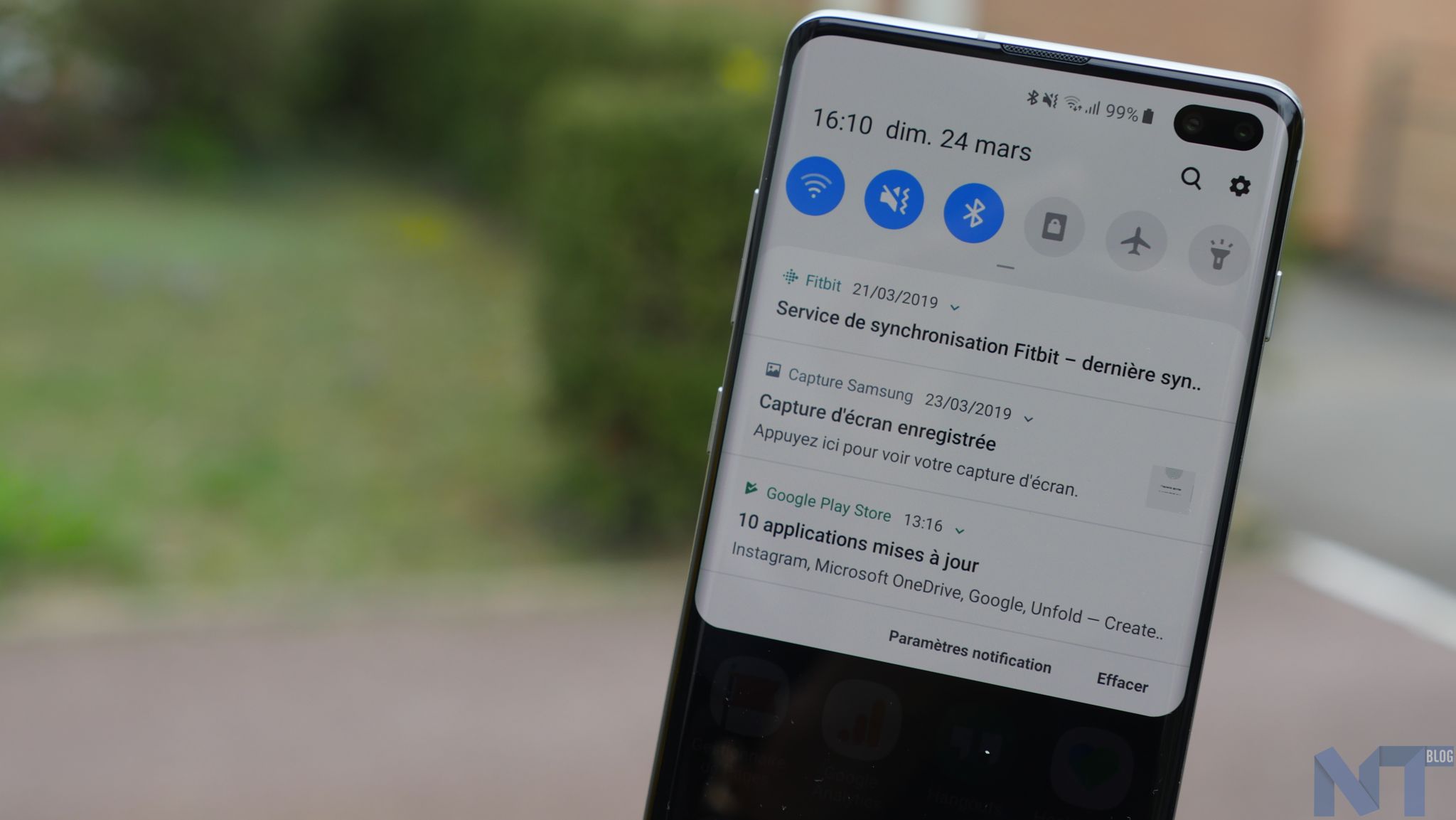 Les premiers trous « Infinity-O » dans l’écran étaient supérieurs à 3 mm. Autrement dit, ils étaient voyants. Pour compenser ce trou relativement grossier, Samsung a travaillé sur la partie logicielle. Ainsi, chaque fois qu’elle est active, une lumière brillante enveloppe l’anneau sous Android.
