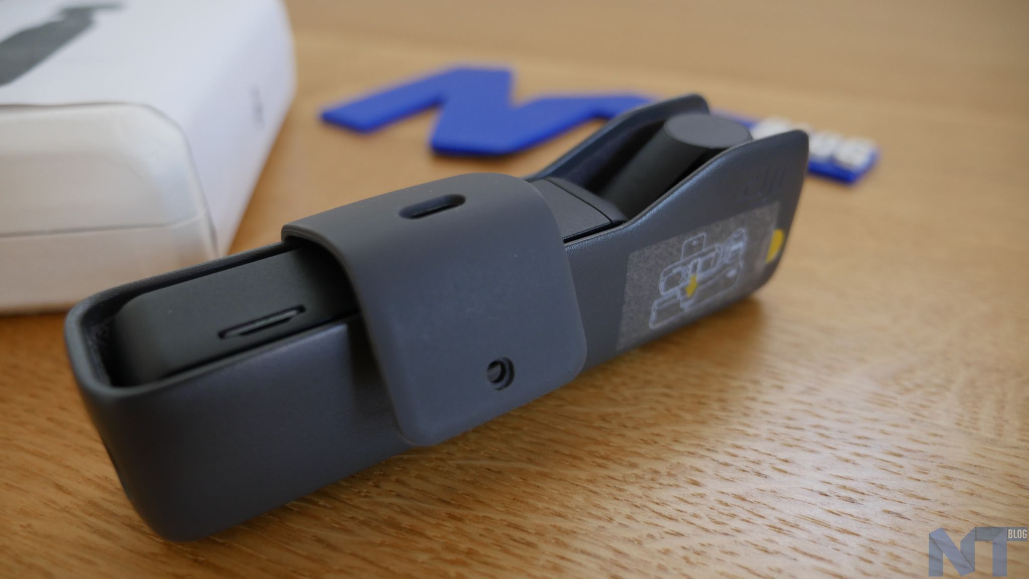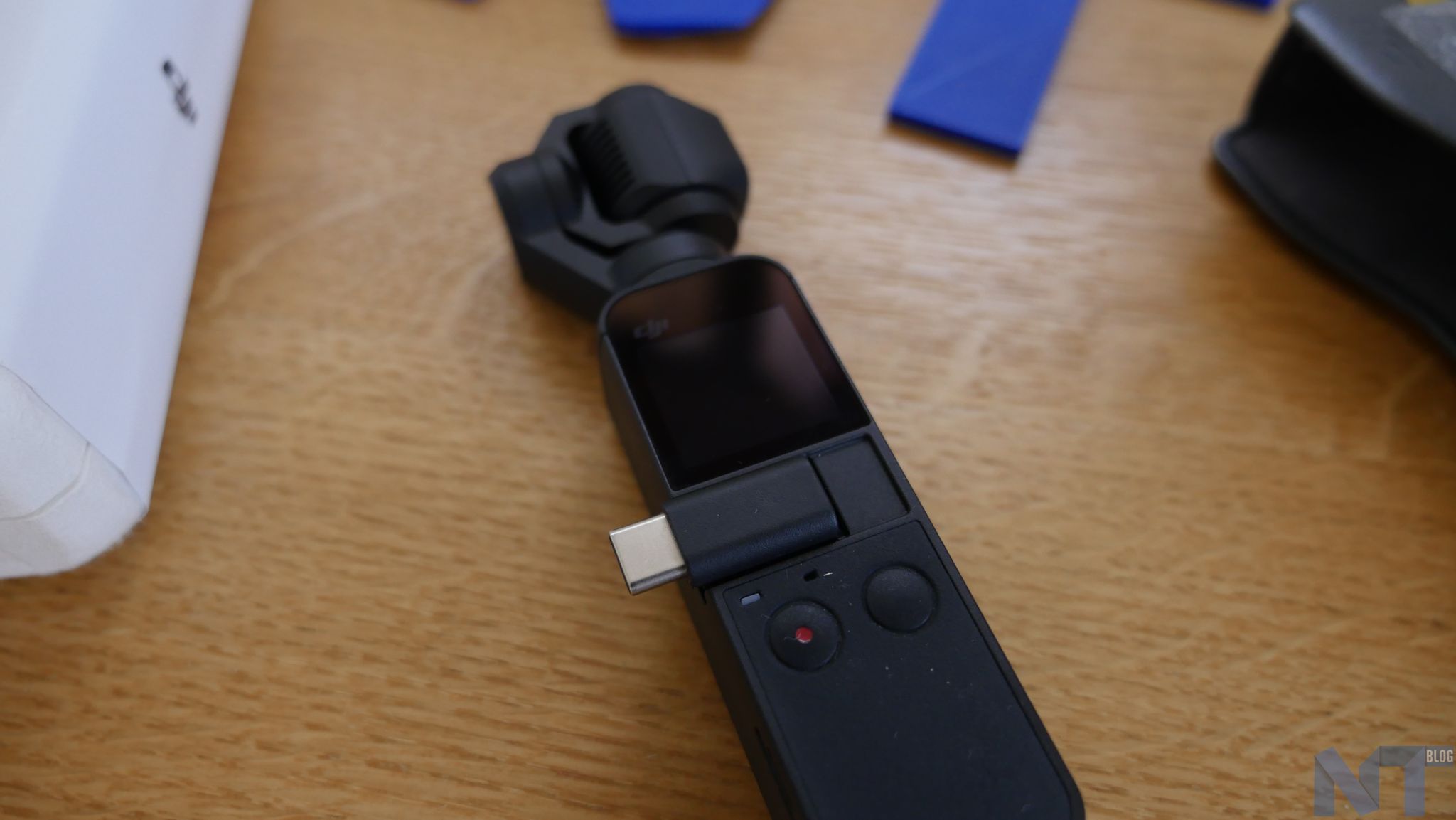 C’est le meilleur moyen de transférer des fichiers sur votre smartphone, car le taux de transfert est constant autour de 10 Mo/s avec une connexion physique stable. Il est appréciable de ne pas uniquement compter sur une connectivité Wi-Fi, en particulier lors du transfert de vidéos 4K avec une taille de fichier importante. Lorsque vous n’utilisez pas l’adaptateur Lightning ou USB-C, vous pouvez le faire glisser hors du port et le positionner dans l’autre sens. Cela protège à la fois les connecteurs du port universel et la fin de la connexion à votre smartphone. C’est très agréable un tel port. La connexion de votre smartphone directement à la Osmo Pocket ouvre également davantage de paramètres et un viseur étendu.