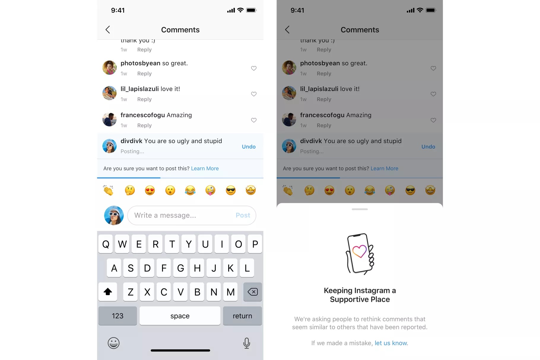 Selon Instagram, les fonctionnalités existantes de la société, y compris le blocage, ne conviennent pas à de jeunes utilisateurs en raison du stress que cela peut entraîner dans leur vie réelle. Les adolescents peuvent éviter de bloquer les intimidateurs, car ceux-ci vont dans la même école, par exemple, et seront conscients du fait qu’ils ont été bloqués.
