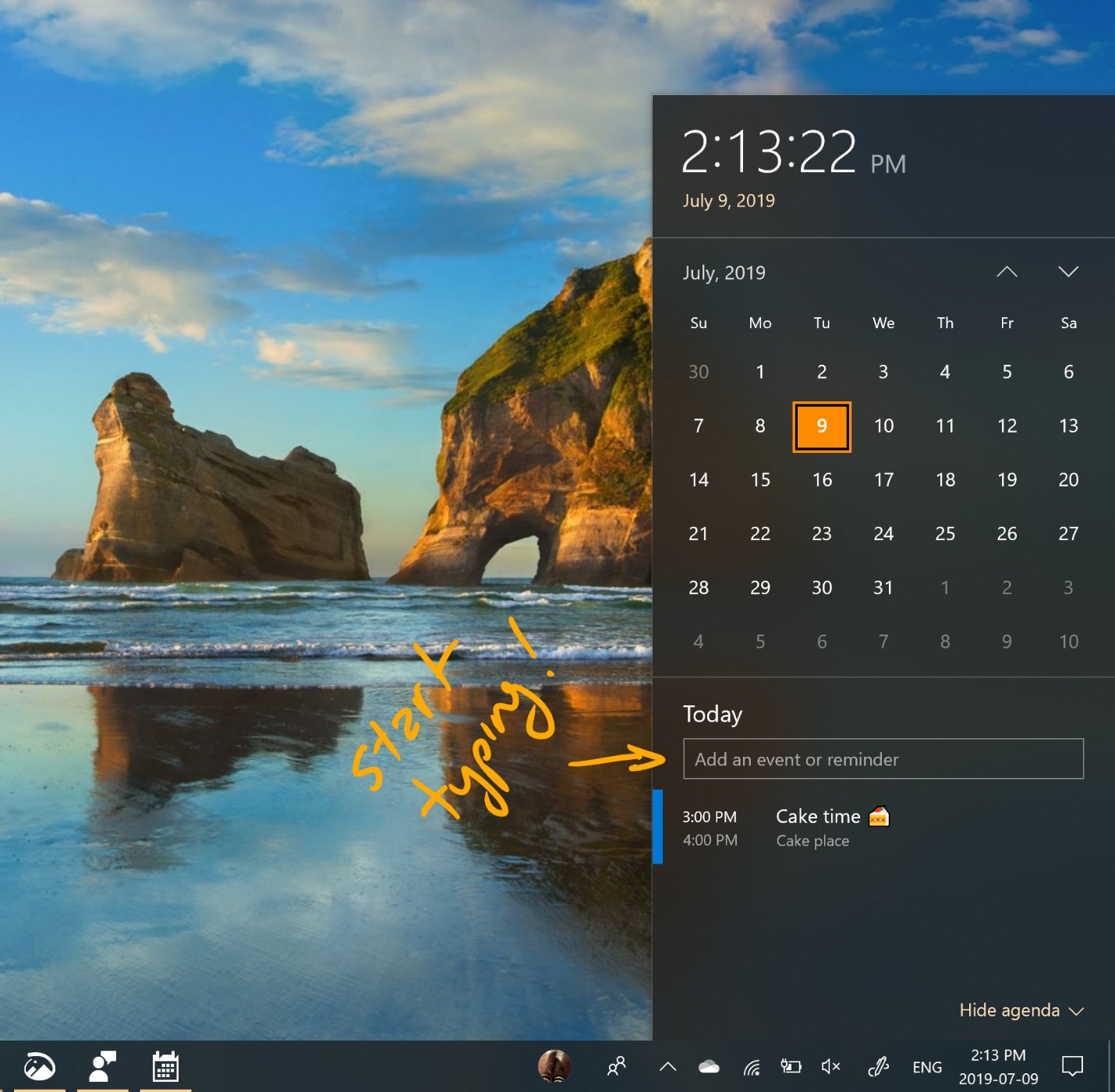 Ensuite, cette nouvelle version de Windows 10 est livrée avec une option permettant de créer rapidement un événement directement à partir de la barre des tâches. Le volet dépliable de l’agenda propose une nouvelle option pour ajouter un événement ou un rappel.