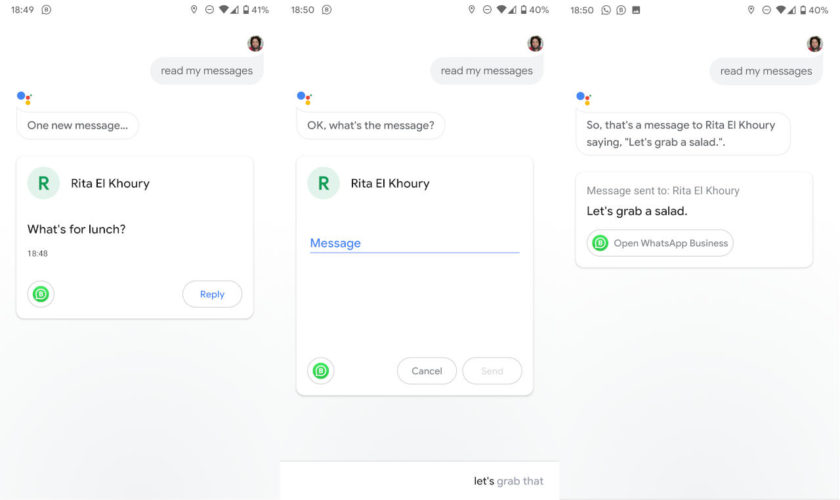 À partir de là, vous pouvez directement répondre par la voix ou en tapant, et votre réponse sera envoyée depuis l’application où le message a été reçu, en le marquant comme « lu » au cours du processus. Bien que cette fonctionnalité ne prenne actuellement en charge aucun média en dehors du texte (par exemple, elle ne lit aucun message audio ni vidéo envoyé), elle pourrait être adoptée ultérieurement.