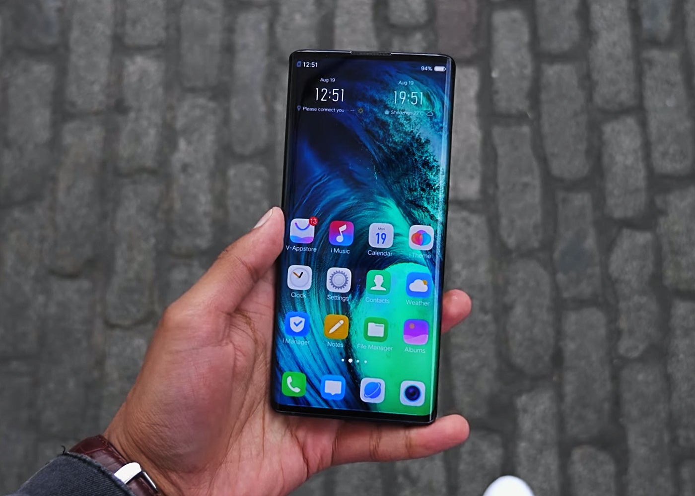 Le nouveau Vivo NEX 3 va encore plus loin dans le ratio écran/châssis en arborant un écran en verre incurvé qui enveloppe les côtés du smartphone — les côtés gauche et droit sont essentiellement moitié écran, moitié téléphone.