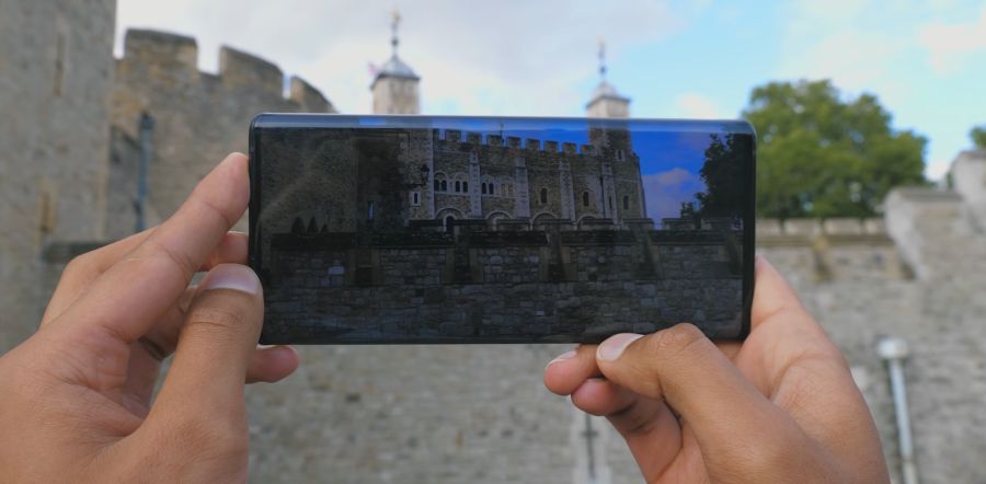 Jeux, vidéos et photos s’étendent d’un bord à l’autre de l’écran (et un peu au-dessus de celui-ci, très honnêtement). Pour montrer à quoi ressemble prendre des photos avec un smartphone sans bords, Mrwhosetheboss visite certains lieux touristiques populaires à Londres et capture les images d’une manière qui permette à l’image au smartphone de se fondre dans le décor du monde réel de manière presque transparente.