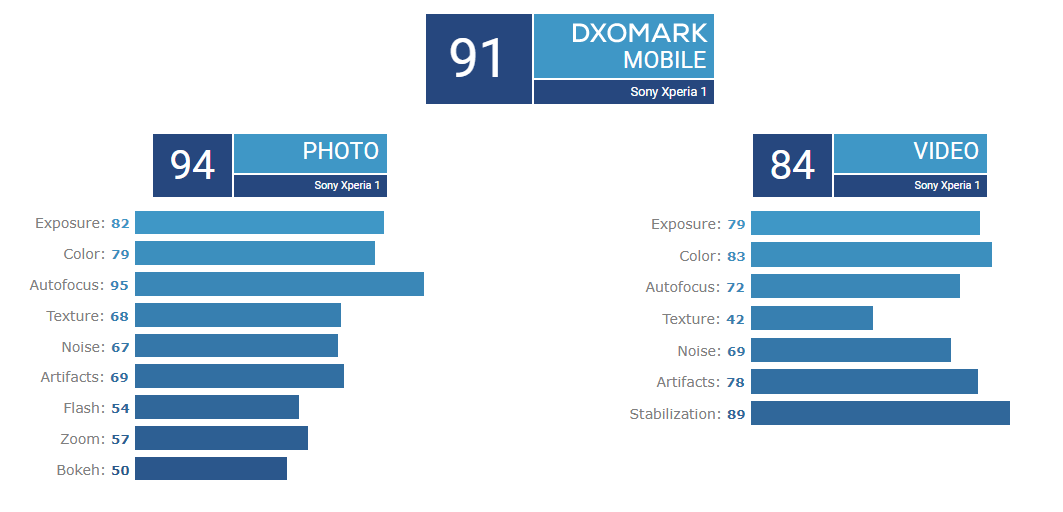 Malheureusement, cela ne semble pas être le cas, d’après un minutieux examen de DxOMark. En effet, le Xperia 1 ne l’est pas non plus. Le smartphone a marqué 94 points pour les photos, et 84 points pour la catégorie vidéo. Selon DxoMark, le Xperia 1 n’est étonnamment pas à la hauteur de ses concurrents phares tels que le Galaxy Note 10+ 5G qui a eu un score de 113 points.
