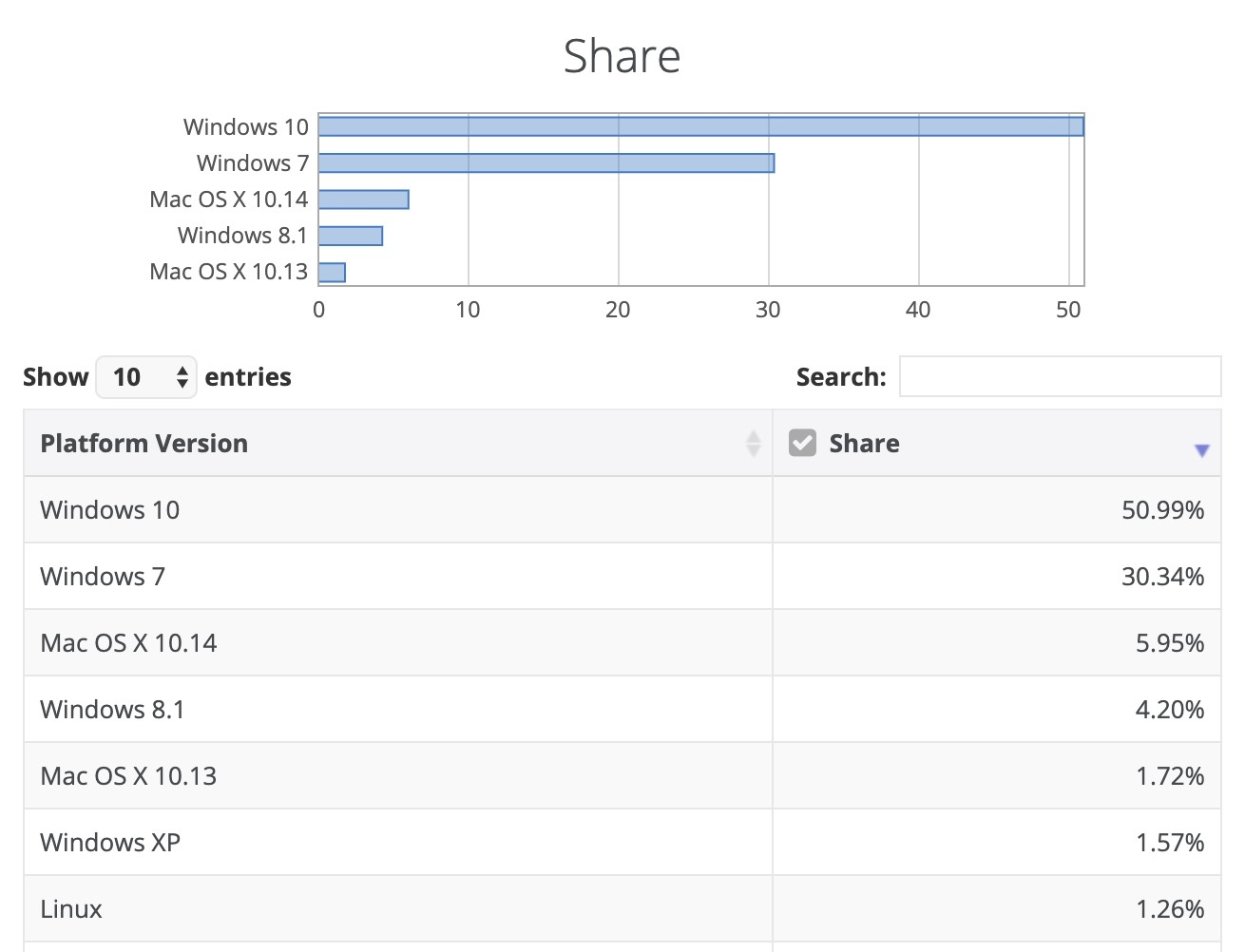 Windows 8.1, qui avec Windows 10 restera les deux seules versions Windows prises en charge, est passé de 5,29 % en juillet à 4,20 % en août, mais il n’y a pas lieu d’être surpris. Microsoft insiste pour que les utilisateurs passent à Windows 10 ; il est donc probable que la majorité des utilisateurs qui abandonnent Windows 7 effectuent une mise à niveau vers cette dernière version du système d’exploitation.