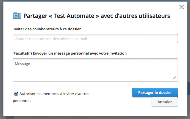 Mais, maintenant vous allez retrouver une option supplémentaire dans la boîte de dialogue de partage d’un dossier avec d’autres utilisateurs, intitulée “Autoriser les membres à inviter d’autres personnes”. Cette petite attention va donc apporter ce petit besoin nécessaire pour tous. En effet, dorénavant vous allez avoir la possibilité d’ajouter des collaborateurs supplémentaires pour un dossier partagé. Il s’agit d’un excellent ajout aux dossiers partagés, puisqu’il distribue le travail d’administration aux membres de l’équipe, plutôt que de l’assigner à une seule personne qui héberge le dossier.