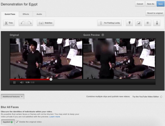 C’est une démarche intéressante de Google. De toute évidence, de plus en plus de gens se retrouvent être des vidéastes amateurs, capturant ainsi des événements clés avec rien de plus qu’un mobile… Alors si maintenant vous pouvez facilement masquer les visages et ainsi masquer l’identité des personnes présentes sur la vidéo, vous voilà protégé de toute poursuite…