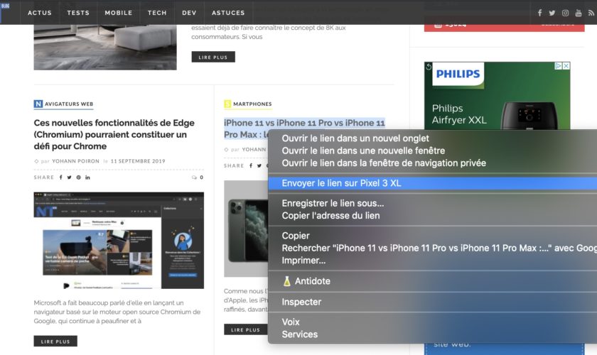 La fonctionnalité a commencé à apparaître sur les versions Windows, macOS, Android et iOS de Chrome. Depuis longtemps, Chrome prend en charge la possibilité de parcourir vos onglets ouverts et récents sur plusieurs appareils, mais cette fonction d’envoi à l’appareil accélère les choses si vous passez de la navigation sur un PC ou un ordinateur portable à un smartphone ou inversement.