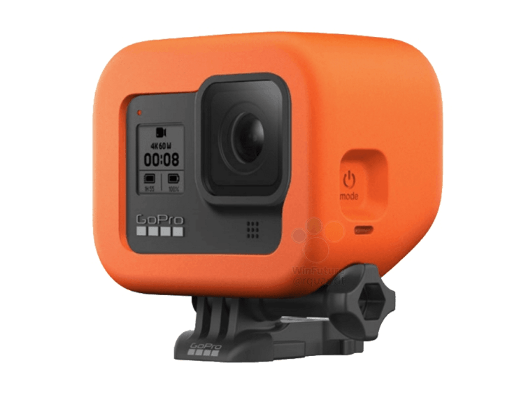 Enfin, nous arrivons aux accessoires inclus dans cette fuite, dont la GoPro Light Mod. Il s’agit d’une lampe à 10 LED qui peut être montée sur la caméra d’au moins deux façons. Ensuite, il y a ce que WinFuture décrit comme le « Floaty ». Comme son nom l’indique, le « Floaty » est une sorte de couche flottante pour la caméra qui l’empêche de couler au fond d’un plan d’eau, et de couleur orange pour qu’il soit facile à repérer quand la caméra disparaît. Le fait qu’il ressemble à un boîtier signifie qu’il doit également offrir une certaine protection contre les dommages causés par les chutes.