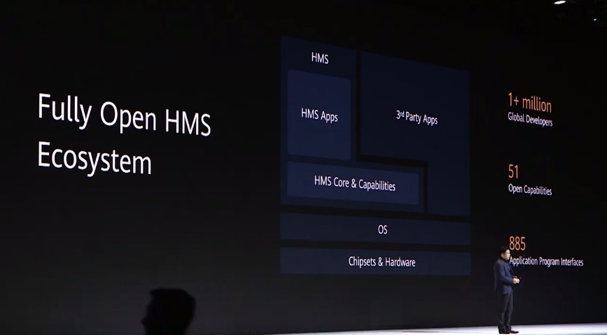 HMS sera un écosystème open-source, a déclaré le dirigeant de Huawei, prenant en charge les applications tierces en plus de ses propres « capacités et noyau » construits sur l’OS sous-jacent — dans ce cas, Android 10.
