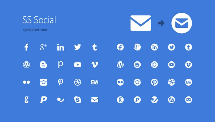 La seconde, “SS social” est une police composée de logos des plus grands services sociaux sur le Web. Pour seulement 1$, l’ensemble “social” avec 40 glyphes et 23 mots-clés s’avérera fort utile pour tous vos projets.