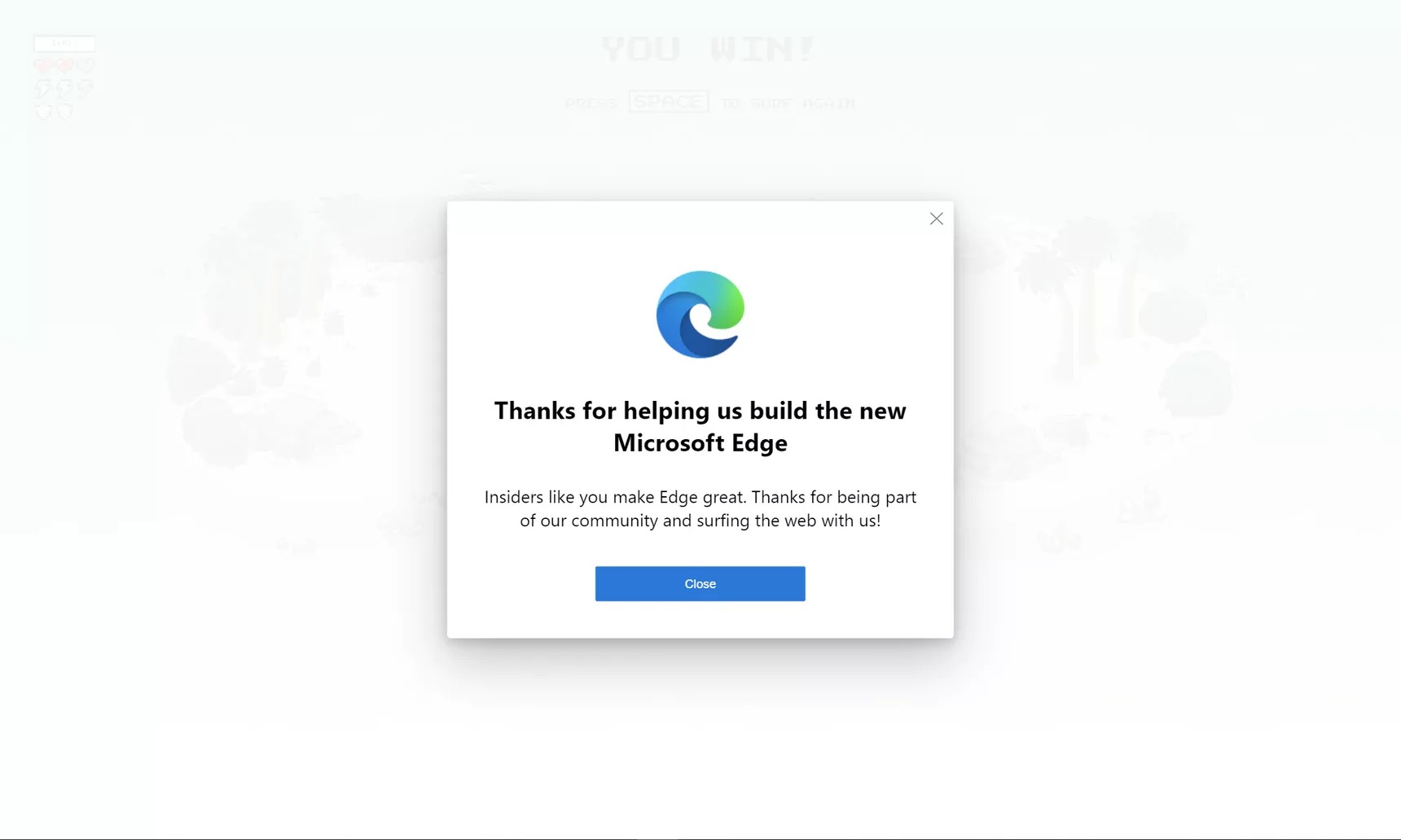 Au final, les meilleurs ont réussi à trouver un jeu de surf secret (accessible sur edge://surf/ depuis Edge), et le nouveau logo une fois celui-ci terminé.