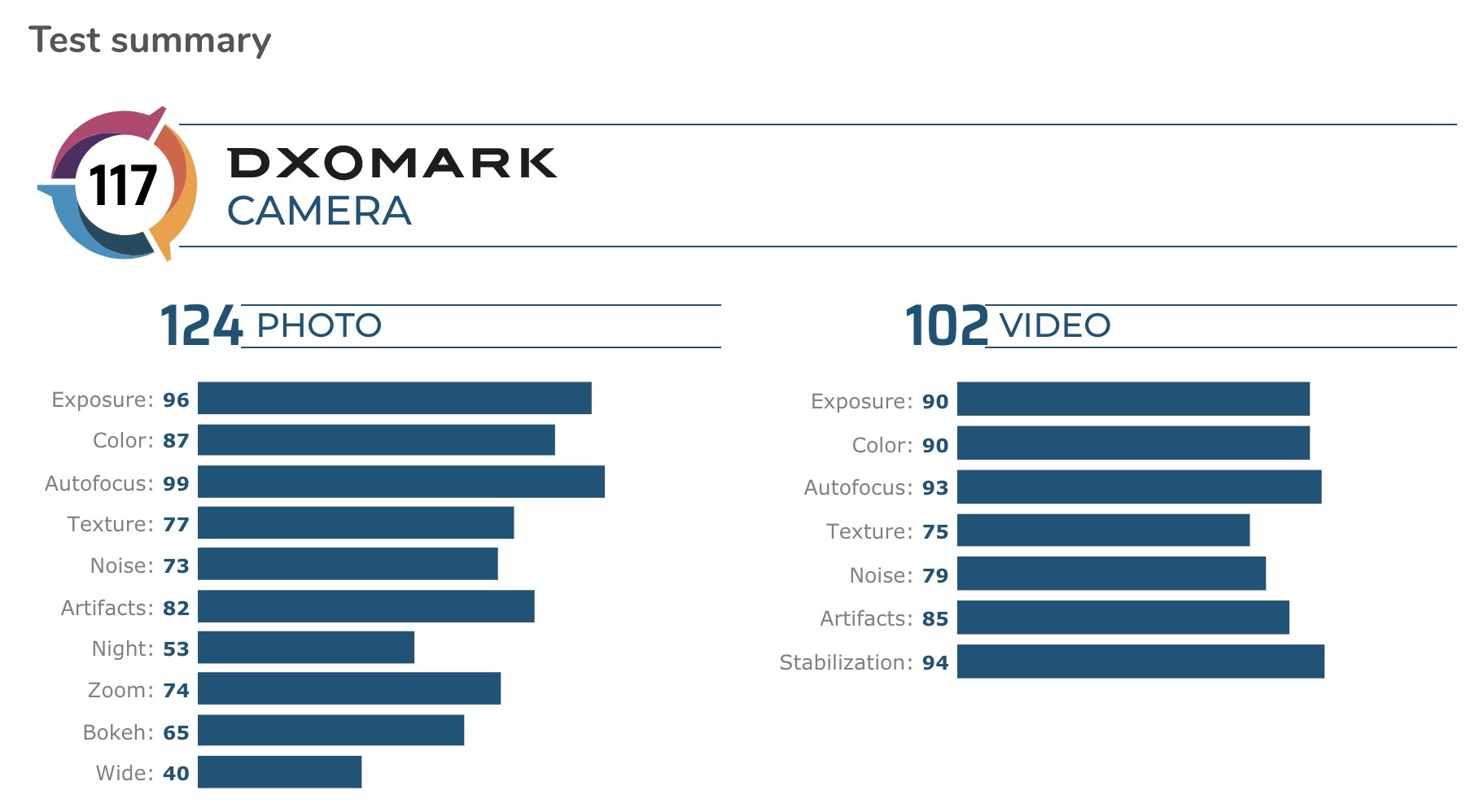 Avec certains algorithmes alimentés par l’intelligence artificielle, ce système a permis à DxOMark d’obtenir certains des meilleurs scores jamais obtenus, en particulier en ce qui concerne la vidéo. L’exposition, les couleurs et les détails sont notés comme étant assez bons dans toutes les conditions d’éclairage.