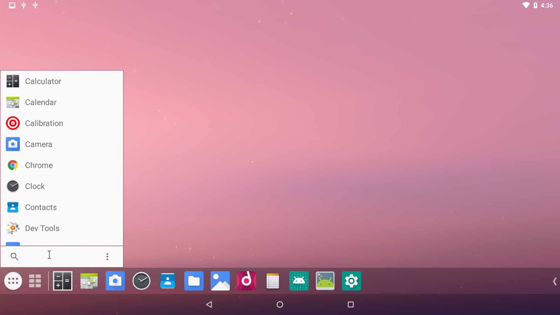 Il ajoute également une nouvelle barre des tâches comme lanceur alternatif qui prend en charge le mode fenêtre de forme libre et place un menu de démarrage et une barre d’état système avec les applications récentes en haut de l’écran, permet une orientation par défaut sur les périphériques sans capteurs connus, et enfin permettra aux applications en mode portrait de fonctionner sur un périphérique en mode paysage sans devoir faire tourner l’écran.