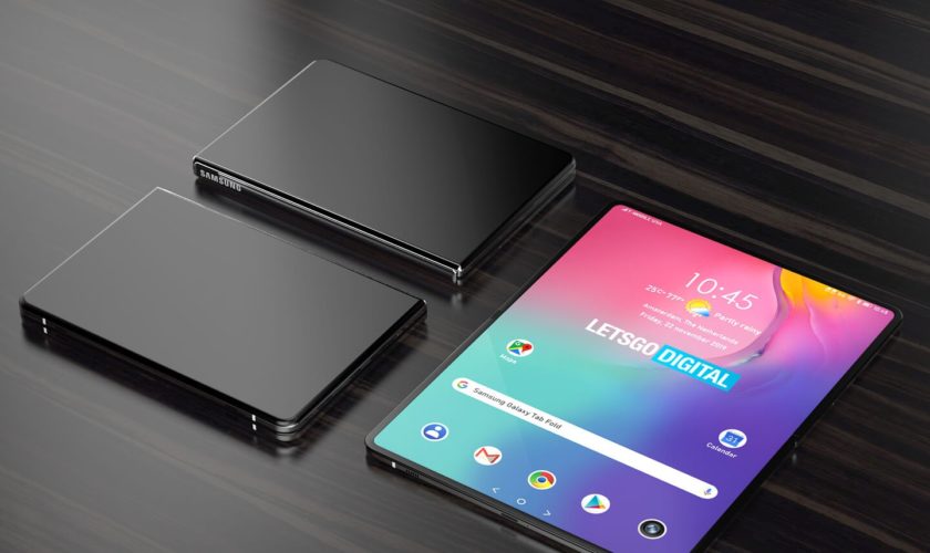 C’est ce qui semble être l’idée derrière ce nouveau brevet de Samsung qui est comme le Galaxy Fold, un dispositif pliable avec une charnière entre les deux écrans. Faute de nom officiel, LetsGoDigital l’appelle simplement la Galaxy Tab Fold. Il y a en fait trois modèles inclus dans le brevet, mais le premier semble plus susceptible d’être transformé en un véritable produit commercial.