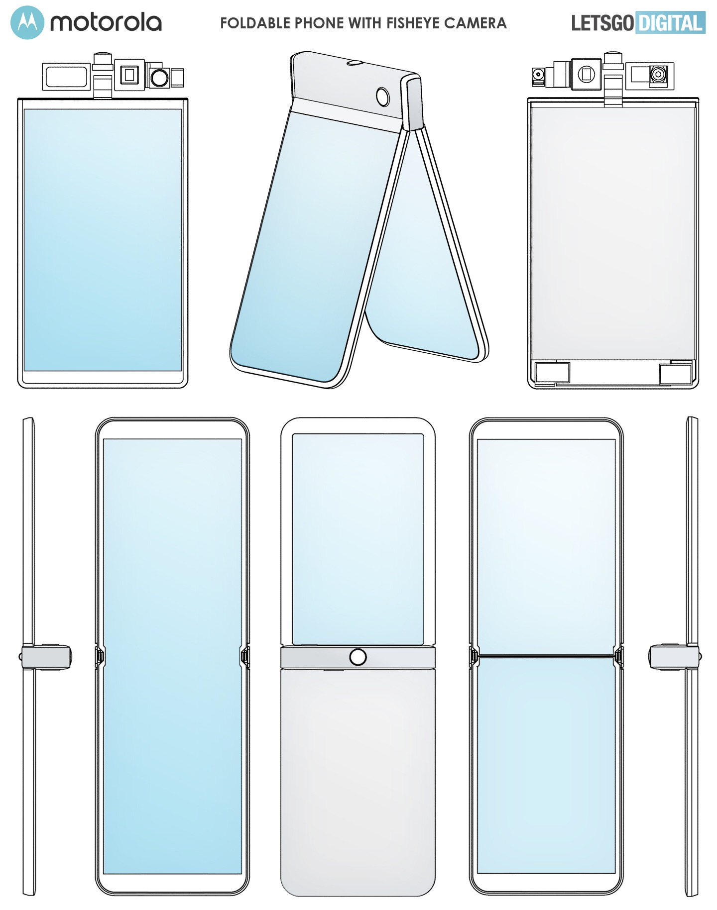 Montré dans le brevet, on peut voir une caméra qui s’enclenche sur le dessus de ce Motorola RAZR quand il est déplié, doté d’un viseur, et un autre Moto Mod doté d’un objectif, qui se fixe à une autre partie du smartphone quand il est ouvert. Nous savons que les deux sont des Moto Mods optionnels, car ils n’apparaissent pas sur toutes les photos.