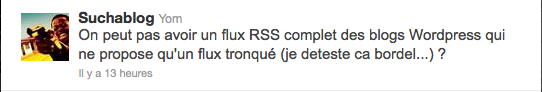 - Flux RSS tronqué : utile pour le blogueur, moins pour l’internaute