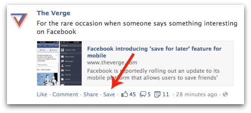 The Verge a également attrapé une capture d’écran de la fonctionnalité en action sur la version de bureau. Comme vous pouvez le voir, le bouton “Save” apparaît en bas d’une publication à côté des traditionnels boutons “J’aime”, “Partager” et “Commenter”.