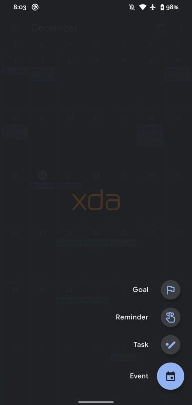Une fois l’application Google Agenda mise à jour, lancez-la et appuyez sur l’icône plus en bas à droite pour afficher une nouvelle option : « Tasks ». Si vous ne voyez pas encore l’option, vous devrez peut-être attendre un peu plus longtemps qu’elle soit déployée côté serveur.