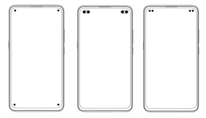 Les images jointes au dépôt montrent soit un seul trou dans chaque coin de l’écran, soit une découpe en forme de pilule dans les coins supérieurs gauche et droit (chaque « pilule » contenant deux capteurs), soit une paire de trous séparés dans les coins supérieur gauche et droit.