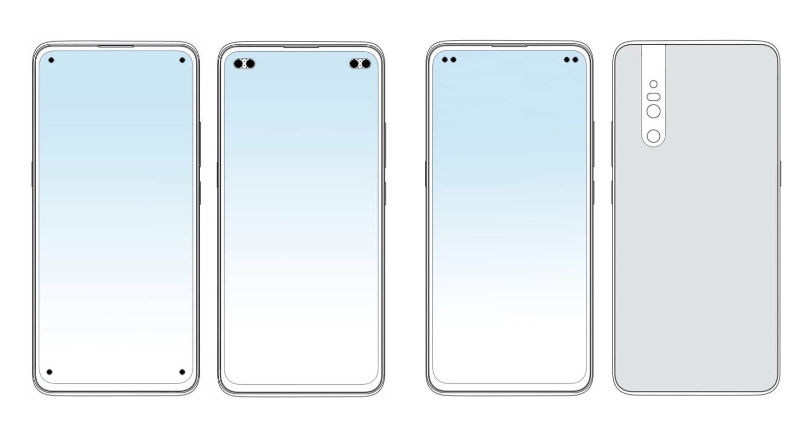 Dans la collection de dessins figurant dans les documents soumis à la NIPA, Vivo montre comment elle aimerait commercialiser des smartphones avec deux ou quatre trous dans l’écran, ce qui permettrait d’avoir plus d’options pour les caméras frontales, les capteurs et autres combinaisons exotiques que la société chinoise pourrait mettre en œuvre pour attirer davantage d’acheteurs !