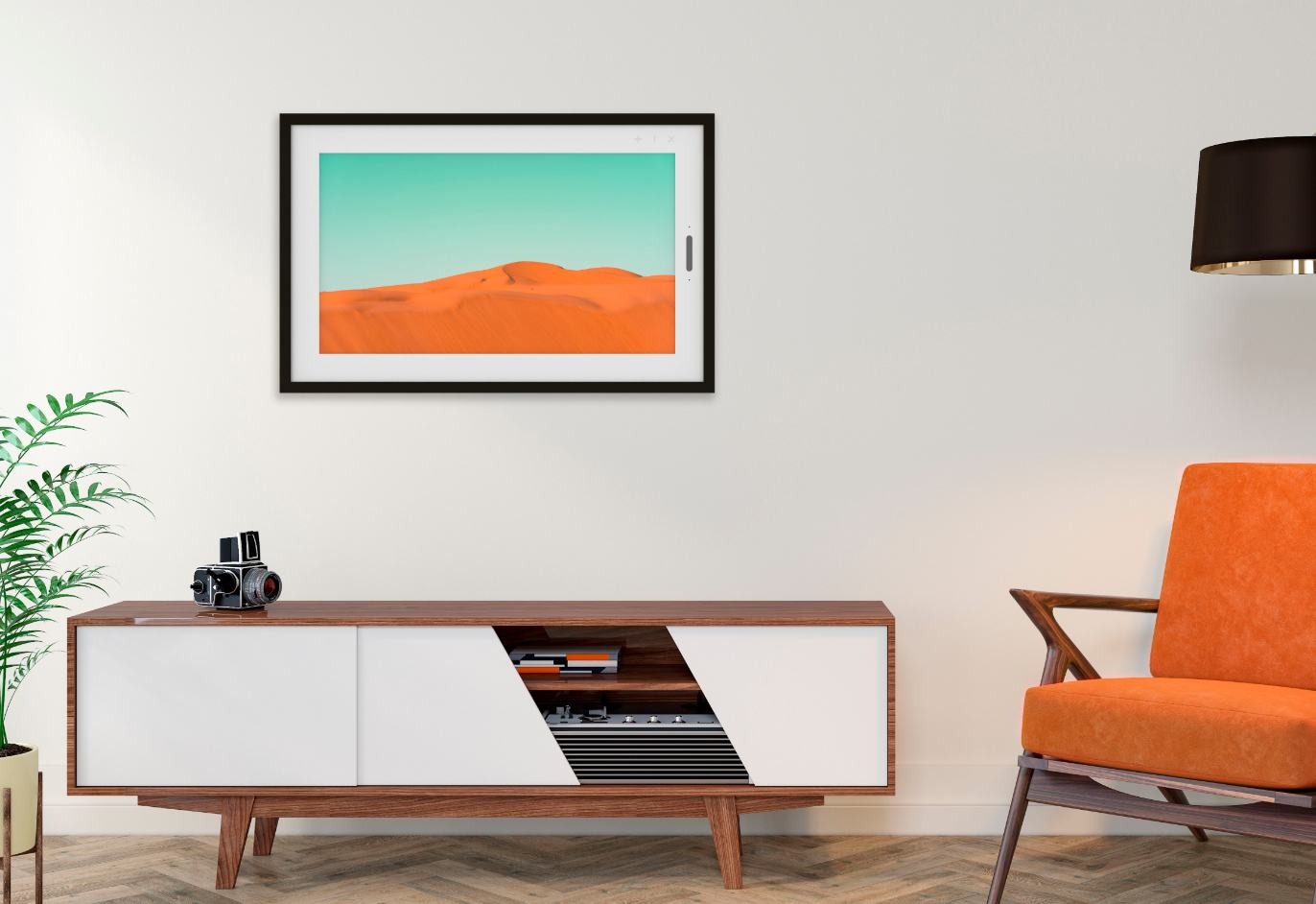 Le Smart Frame tire les images du cloud à l’aide de Google Photos, et dispose de sa propre IA intégrée pour la conservation des images. L’application gratuite donne accès à des « centaines » d’œuvres d’art affichées par le Smart Frame. Les utilisateurs peuvent installer le produit en orientation paysage et portrait ; le système de montage amovible du cadre permet de faire pivoter facilement l’écran.