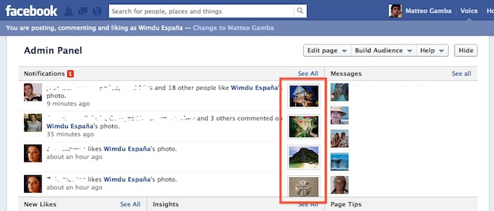 AllFacebook a obtenu cette capture d’écran qui montre un aperçu les miniatures de photos figurant dans le panneau d’administration des pages :