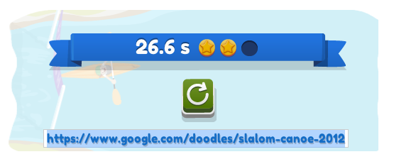 Le doodle en lui-même va vous permettre de revenir dans cette compétition, et ainsi tenter de battre Tony ou Émilie ! Je pense que le challenge est compliqué … En tout cas, pas de d’eau vive, et seulement des portes vertes à passer. En revanche, sur le parcours vous allez retrouver des rochers, et également des grenouilles qui peuvent jaillir de l’eau freinant ainsi votre embarcation de manière importante.