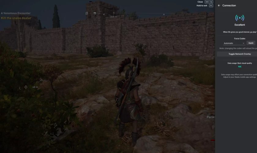Si vous êtes un utilisateur de Stadia, vous pouvez vérifier la qualité et la résolution de votre connexion en appuyant sur les touches “Maj + Tab” une fois qu’un jeu est lancé et en sélectionnant la section de connexion. Un label 4K devrait apparaître si votre connexion et votre écran prennent en charge la nouvelle option de streaming. Si vous n’obtenez pas une image de qualité 4K, vous devrez peut-être retourner à votre application Stadia sur votre appareil Android.
