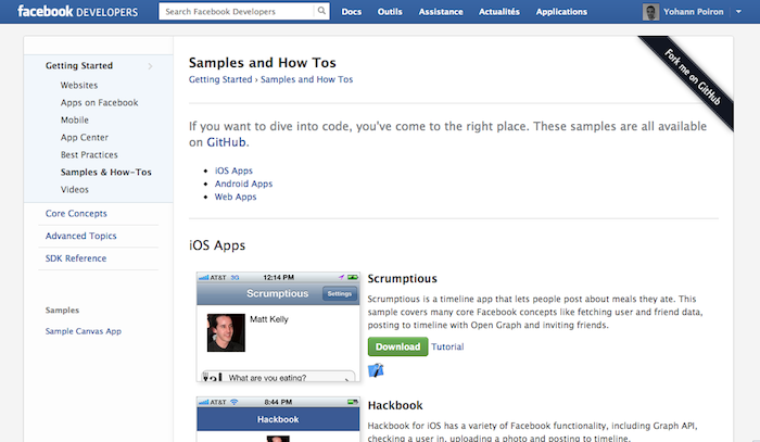 Une des façons pour Facebook d’aider à soulager les nouveaux développeurs, est la page de exemple d’applications. Elle dispose d’un certain nombre d’applications qui montrent les différentes façons dans lesquelles Facebook peut être intégré dans les applications iOS et Android. Jusqu’à présent, ces exemples d’applications n’étaient disponibles que dans la partie documentation de Facebook.