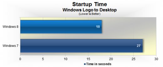 S’il est indéniable que l’OS est plus rapide, selon l’étude effectuée par TechSpot, Windows 8 serait un tiers plus rapide que Windows 7 au démarrage. Voici le graphique du rapport :