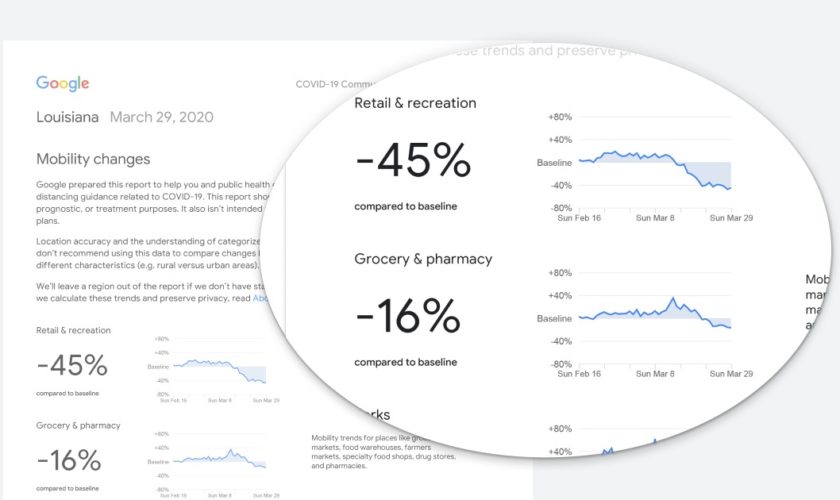 Google a publié un rapport pour montrer l’efficacité avec laquelle les directives de confinement liées au coronavirus (COVID-19) sont suivies dans le monde entier. Connu sous le nom de COVID-19 Community Mobility Reports, le dernier outil offrira des informations détaillées sur différents aspects. Couvrant 131 pays, les résultats révèlent que les confinements ont déjà gravement modifié les habitudes de vie des gens dans de nombreux pays, en montrant une baisse importante des visites dans les boutiques, les transports publics et les parcs.